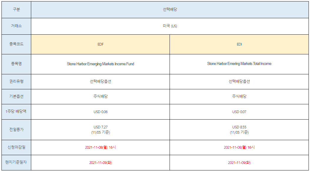 해외주식 미국 종목의 선택배당 권리발생 및 신청에 관하여 아래와 같이 안내해드립니다.
