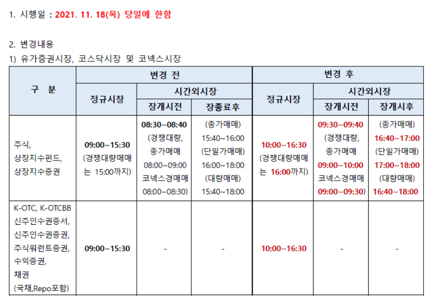 2022학년도 대학수학능력 시험 실시에 따라 주식 및 파생상품 거래시간이 아래와 같이 임시적으로 변경되오니 거래에 참고하십시오.