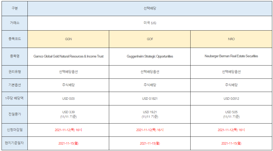| 권리유형 | 선택배당옵션 | 선택배당옵션 | 선택배당옵션 |