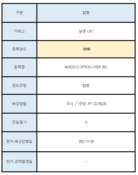 | 종목명 | INVESCO OFFICE J-REIT INC |