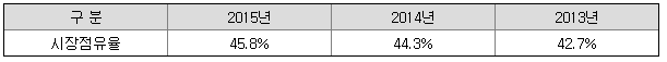 ※ 2016년 이후 시장점유율은 타사 매출실적 확인불가로 기재하지 않았습니다.