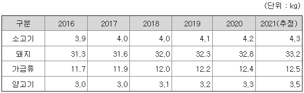 중국 육류별 인당 소비량 예측